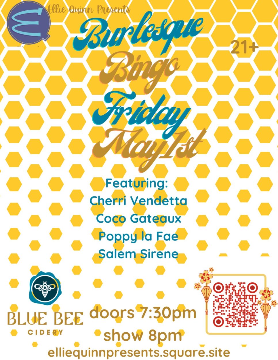 Bingo, but make it burlesque. At Burlesque Bingo at Blue Bee Cider, the performances are the game. Your bingo card is filled with moments, moods, and mayhem you’ll spot live—no traditional rounds, just keep your eyes up and your card ready.
